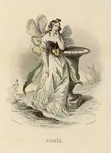 Personnification de la pensée par Grandville (extrait de Les Fleurs animées, tome 1, 1847, Bibliothèque de Nancy).