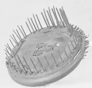 L'instrument se compose d'une table d'harmonie en bois courbée en demi-cercle. Dans cette table d'harmonie sont fixés des clous en fer ou en laiton de différentes longueurs, accordés pour donner une gamme chromatique. Le son est produit par friction avec un archet solide, tendu de crin noir[2],[3].