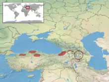 Aire de répartition de l'espèce Vipera transcaucasiana selon l'UICN (consulté le ).