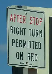 L'article R415-15 du Code de la route modifié par le décret n° 2010-1390 du portant diverses mesures de sécurité routière[3] permet une signalisation distincte, pouvant autoriser conditionnellement le franchissement de l'intersection en apposant sur le feu un panonceau M12a. En Belgique, il s'agit du panneau B22.