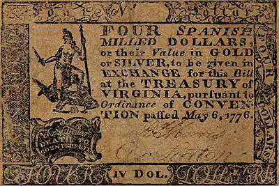 Aux États-Unis en 1776, Virtus est devenu la figure centrale du sceau de Virginie et du drapeau d'État qui a suivi, qui comporte le sceau. Le billet de quatre dollars de Virginie, une monnaie continentale, avait également Virtus représentée sur son avers.