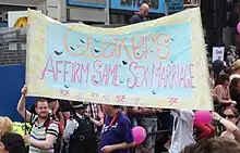 En 2010, l'organisation "Catholics for equality" favorable au mariage entre personnes de même sexe a été fondée aux États-Unis[105].