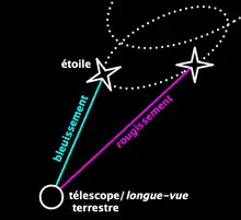 La composante tangentielle du mouvement est souvent inconnue, le mouvement propre pour des objets situés hors de notre Galaxie étant difficile à mesurer[1]. Pour les pulsars, il est également possible de déterminer leur vitesse orthogonale en mesurant très précisément leur accélération radiale. Cette méthode repose sur un phénomène physique très simple appelé l'effet Shklovski. Cependant, dans le cas des pulsars, c'est la vitesse radiale qui est difficile à déterminer.