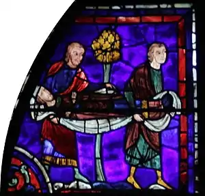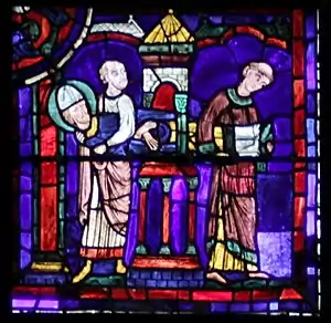 - Claudine Lautier, Les vitraux de la cathédrale de Chartres : Reliques et images, vol. 161, no 1, Bulletin Monumental, (DOI 10.3406/bulmo.2003.1180), figure 37 (détail de vitrail de la cathédrale de Chartres).