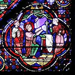 Le vitrail suit un manuscrit du XIIe siècle provenant de l'abbaye Saint-Laumer de Blois, dont l'abbé était chanoine de Chartres[1].