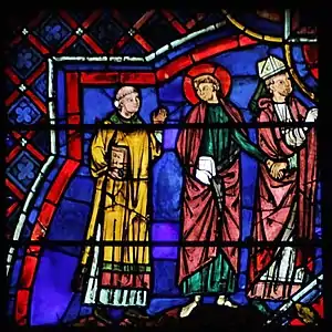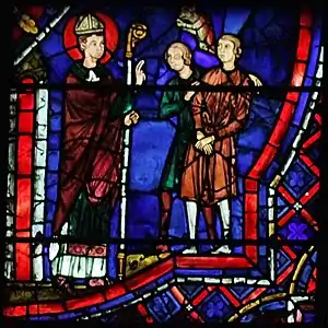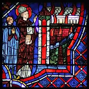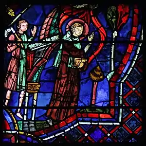 Le vitrail de 8,90 × 2,18 m est situé derrière une grille dans la petite « Chapelle des confesseurs », la deuxième rencontrée dans le déambulatoire sud de la cathédrale Notre-Dame de Chartres; dans laquelle il occupe la position de centre gauche. Il s'inscrit dans une Lancette de style gothique. Il est numéroté 012 dans le Corpus vitrearum. Il partage cette chapelle avec quatre autres lancettes : Saint Thomas Becket (à l'extrême droite), saintes Marguerite et Catherine à droite, Saint Nicolas (centre), et une grisaille (extrême gauche) représentant saint Nicolas et les trois petits enfants.