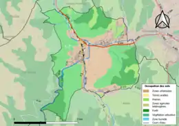 L'occupation des sols de la commune, telle qu'elle ressort de la base de données européenne d’occupation biophysique des sols Corine Land Cover (CLC), est marquée par l'importance des forêts et milieux semi-naturels (60,3 % en 2018), une proportion sensiblement équivalente à celle de 1990 (60,7 %). La répartition détaillée en 2018 est la suivante : milieux à végétation arbustive et/ou herbacée (39,5 %), forêts (20,8 %), zones industrielles ou commerciales et réseaux de communication (17,6 %), zones urbanisées (16,5 %), prairies (5,7 %)[15].
