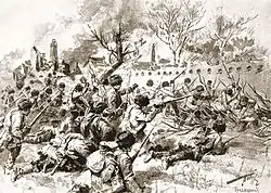 Une brigade russe tirant pendant la bataille de Gaolian (Niva no 34, photographie de Tabourine)