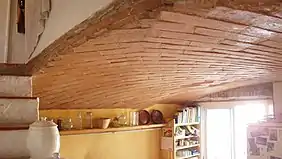 Pour réaliser un plafond ou un escalier, ou pour couvrir un espace entre des arcades ou des murs, on réalise une première feuille de briquettes finement jointes avec du plâtre au-dessus de laquelle on dispose une (ou plusieurs) autres feuilles de briquettes jointes avec du mortier. Le résultat est bien plus léger qu'avec d'autres techniques de construction. On utilisait éventuellement un cintre mince que l'on déplaçait au fur et à mesure de l'avancement, mais la majorité de ces voûtes furent construites sans cintre, en exploitant la grande vitesse de prise du plâtre pour ajouter des briquettes et sans utiliser de soutènement en bois.