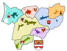 Vogtsburg forme une unité municipale unique avec les 7 villages viticoles de Achkarren, Bickensohl, Bischoffingen, Burkheim, Oberbergen, Oberrotweil et Schelingen[2].