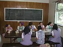 La prise de l'habit monastique symbolise la consécration religieuse, avec notamment chez les moniales le rite liturgique de la « remise du voile » dont les premières traces apparaissent au IVe siècle. Cette cérémonie matérialise la soumission de la religieuse à l'Église comme la femme épousée à son mari[33]. La variété des coiffes féminines semble liée au nombre croissant de congrégations religieuses et la diversité des costumes régionaux dont elles s'inspirent souvent[34]. Le code de droit canonique catholique de 1917 impose que les femmes doivent être séparées des hommes dans les églises et qu'elles doivent y avoir la « tête couverte » et « être vêtues modestement, surtout quand elles s'approchent de la table du Seigneur »[35].
