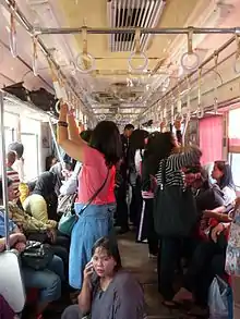 En 1947, des voitures réservées aux femmes et aux enfants sont instaurées sur la ligne Chūō et sur la ligne Keihin-Tōhoku. À cette époque, la saturation de ces lignes aux heures de pointe était si grave que, souvent, les femmes et les enfants étaient physiquement incapables d'embarquer. Ces voitures réservées sont restées en activité sur les trains du matin de la ligne Chūō jusqu'en 1973[20].