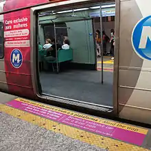 En avril 2006, le métro de Rio de Janeiro met en place des voitures pour femmes en exécution d'une loi de l'État. Celle-ci, votée le mois précédent, impose la mise à disposition de voitures pour femmes pour éviter le harcèlement sexuel. Les rames ou convois de six voitures doivent inclure une voiture peinte en rose, à l'usage exclusif des femmes ; ces restrictions s'appliquent du lundi au vendredi aux heures de pointe, entre 6 heures et 9 heures le matin et entre 17 h et 20 h en soirée. La police du métro veille à empêcher les hommes de monter à bord de ces voitures et un marquage au sol indique le point d'embarquement des voitures pour femmes[2].
