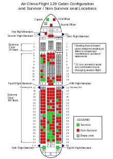 Parmi les 166 passagers et membres d’équipage présents à bord, 129 ont été tués et 37 ont survécu, y compris le commandant de bord, seul rescapé de l'équipage, ainsi que deux des 8 agents de bord.