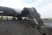 Le côté droit du fuselage a subi des dommages considérables à la suite de l'incendie, notamment la structure de l'aile droite qui a partiellement fondu sous l'effet de la chaleur. L'appareil a, par la suite, été retiré du service.