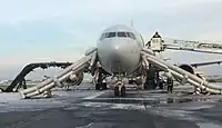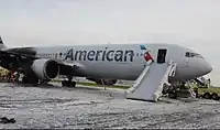 N345AN, le Boeing 767 d'American Airlines impliqué, ici à l'aéroport de Manchester en juin 2016, 4 mois avant l'incident. | ||||