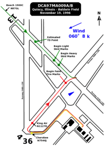Vue aérienne de l'aéroport de Quincy, lieu de l'accident. | ||||