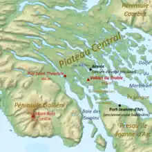 Dans la partie méridionale du plateau Central, au paysage largement dominé par les entablements basaltiques, il forme un relief singulier sur l'itinéraire qui, du nord au sud, mène de l'ancienne station piscicole du lac d'Armor à l'ancienne usine baleinière de Port-Jeanne-d'Arc.
