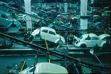 De la production des Coccinelles, l'usine de Wolfsbourg est passée à celle des Golf dès 1974, vendue aux États-Unis sous le nom « VW Rabbit » dans les années 1970 et 1980. La Golf se démarquait de la Coccinelle par bien des aspects, tant esthétiquement que par sa mécanique. Sa ligne angulaire a été dessinée par l'italien Giorgetto Giugiaro. Elle s'inscrivait dans la lignée des petites citadines telles la Mini (1959) et la Renault 5 (1972). La Golf possédait un moteur transversal à refroidissement liquide situé à l'avant qui entraînait les roues avant. Elle possédait également un hayon, un format qui domine le marché depuis. La production des Coccinelles a continué depuis dans des usines plus modestes, en Allemagne jusqu'en 1978, puis au Brésil ou au Mexique où la dernière Coccinelle a été assemblée le à Puebla.