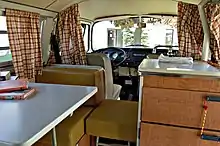 Au départ, les prestations sont rudimentaires et minimalistes, intégrant généralement un siège dos à la route, une table pliante, ainsi qu'un bloc cuisine avec petit évier, réchaud et glacière (remplacé par un petit frigo à partir de 1971.