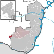 Localisation de Vollmersweiler dans la Verbandsgemeide et dans l'arrondissement