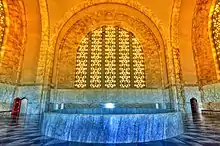 Les travaux sont arrêtés au début de la Seconde Guerre mondiale et Cosani se retrouva dans l'impossibilité financière de poursuivre les travaux. Un nouvel appel d'offres pour l'achèvement de la construction fut remporté par l'entreprise de W.F. du Plessis[8]. En 1942, l'équipe de 4 sculpteurs, chargés de réaliser la frise intérieure en marbre, est constituée.