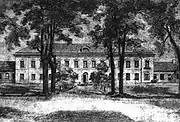 - Maison de maître refaite au XIXe siècle, manoir dans le style éclectique avec deux aîles basses. En 1949, la structure est entièrement reconstruite à l'intérieur pour accueillir une maison de vacances. « Dans le même temps, le bâtiment a reçu une nouvelle extension au centre de la façade orientale avec un portique fortement en saillie. L'aile nord (aile et ancienne galerie-passage) n'a guère subi de modifications, et l'aile sud a été restaurée selon son modèle originel»[3].