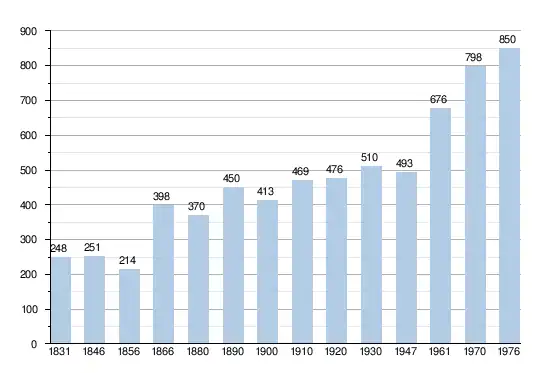 - Sources : INS, Rem. : 1831 jusqu'en 1970 = recensements, 1976 = nombre d'habitants au 31 décembre.
