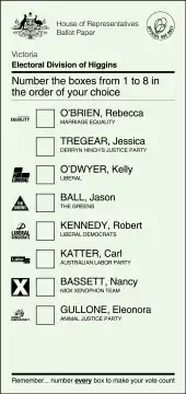 - Ce qui est le cas en Australie d'après le Projet ACE Vote préférentiel : avantage.