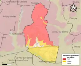 La commune est vulnérable au risque de mouvements de terrains constitué principalement du retrait-gonflement des sols argileux[32]. Cet aléa est susceptible d'engendrer des dommages importants aux bâtiments en cas d’alternance de périodes de sécheresse et de pluie. 95,6 % de la superficie communale est en aléa moyen ou fort (90,2 % au niveau départemental et 48,5 % au niveau national). Sur les 1 400 bâtiments dénombrés sur la commune en 2019, 1065 sont en aléa moyen ou fort, soit 76 %, à comparer aux 91 % au niveau départemental et 54 % au niveau national. Une cartographie de l'exposition du territoire national au retrait gonflement des sols argileux est disponible sur le site du BRGM[33],[34].
