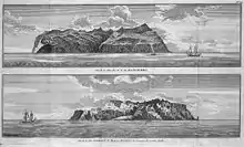Isla Mas-a-tierra, la plus à l'est de l'archipel Juan Fernández fut aperçue au matin du . Il ne restait à bord que 8 marins valides, deux cents hommes étaient morts pendant le passage du Horn, presque deux centaines se mouraient dans les puanteurs de l'entrepont… L'approche fut lente, les manœuvres de mouillage chaotiques, sur le pont encombré par tous les malades qui avaient pu se trainer en haut pour voir la terre. Ils pleuraient : cette île aride et austère était quand même la terre. Soudain, on doubla un promontoire, les forêts vert sombre recouvrant les ravins et les prairies vert clair apparurent, une cascade argentée tombait d'un rocher dans la mer…