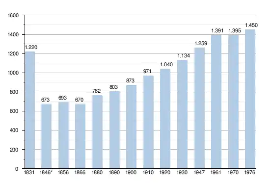 - Sources : INS, Rem. : 1831 jusqu'en 1970 = recensements, 1976 = nombre d'habitants au 31 décembre[2].
