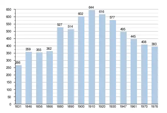 - Sources:INS, Rem:1831 jusqu'en 1970=recensements, 1976= nombre d'habitants au 31 décembre