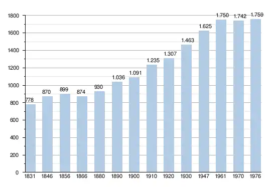 • Sources : INS, Rem. : 1831 jusqu'en 1970 = recensements, 1976 = nombre d'habitants au 31 décembre.