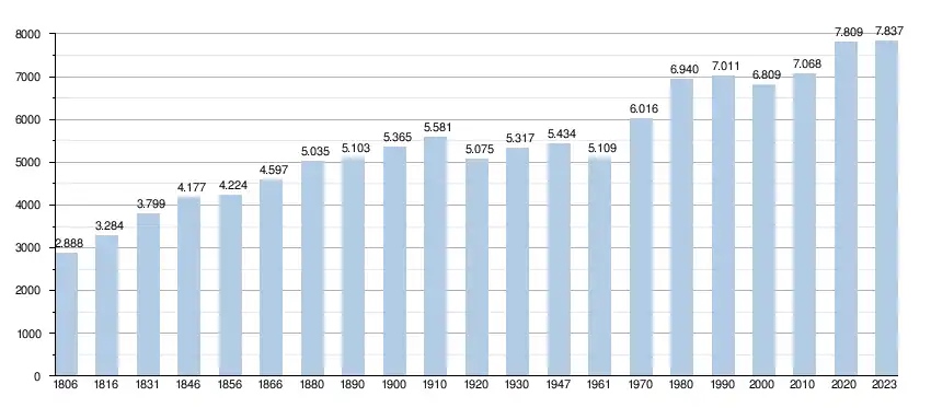 - Source : DGS - Remarque: 1806 jusqu'à 1981=recensement; depuis 1990=nombre d'habitants chaque 1er janvier[3]