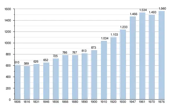 • Sources : INS, Rem. : 1806 jusqu'en 1970 = recensements, 1976 = nombre d'habitants au 31 décembre[2].
