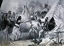 En 1890, l'historien amérindien Charles Alexander Eastman enregistre sa première rencontre avec le chef Blue Horse à Pine Ridge Agency, dans le Dakota du Sud.