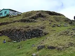Ce niveau correspond à la partie la plus élevée du site, occupant la partie nord de la crête[6]. Une partie du côté sud-est du niveau 1 est un substrat rocheux exposé ; le reste du côté sud-est, ainsi que le côté sud-ouest, ont été aménagés en terrasses[6]. On suppose que l'accès au niveau 1 depuis le niveau 2 se faisait par un escalier sur le côté sud-est, mais toute trace de cet escalier a été érodée par un chemin moderne[6].