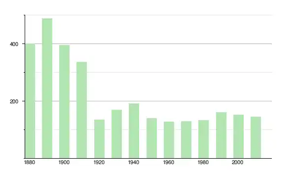| 1900 | 396 | ▼ −18,85 % | |