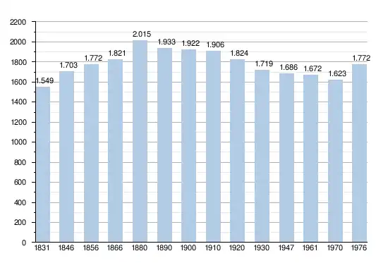 - Sources:INS, Rem:1831 jusqu'en 1970=recensements, 1976= nombre d'habitants au 31 décembre