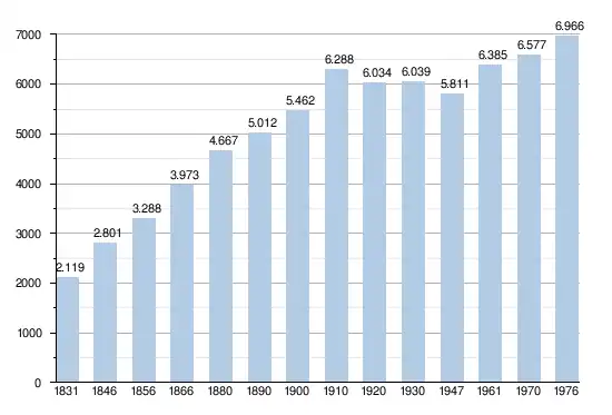 - Sources : INS, Rem. : 1831 jusqu'en 1970 = recensements, 1976 = nombre d'habitants au 31 décembre.