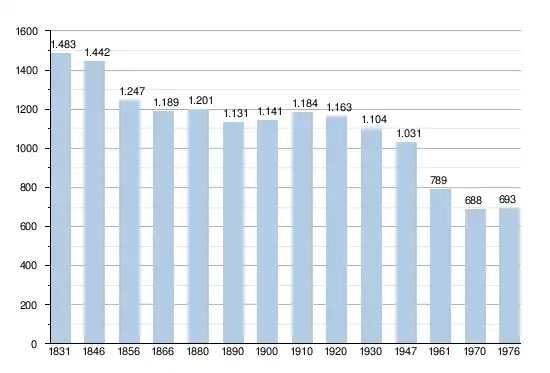- Sources : INS, Rem. : 1831 jusqu'en 1970 = recensements, 1976 = nombre d'habitants au 31 décembre[2].