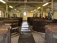 La fermentation du wort a lieu dans ce récipient communément fabriqué en pin d'Oregon ou en inox : on obtient un liquide alcoolisé similaire à la sour beer, appelé le Wash. Il titre alors entre 5° et 8° d'alcool.