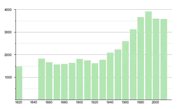 D'après le recensement de 2000, il y avait 3 596 habitants, 1 416 ménages, et 951 familles dans la ville. La densité de population était de 36,4 hab/km2. Il y avait 1 764 maisons avec une densité de 17,8 maisons/km2. La décomposition ethnique de la population était : 95,66 % blancs ; 0,16 % noirs ; 0,11 % amérindiens ; 1,56 % asiatiques ; 0,00 % natifs des îles du Pacifique ; 0,78 % des autres races ; 1,25 % de deux ou plus races. 2,14 % de la population était hispanique ou Latino de n'importe quelle race.