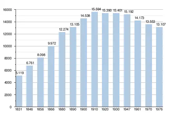 - Sources : INS, Rem. : 1831 jusqu'en 1970 = recensements, 1976 = nombre d'habitants au 31 décembre.[3]