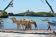 Dromadaires déambulant sur la plage.