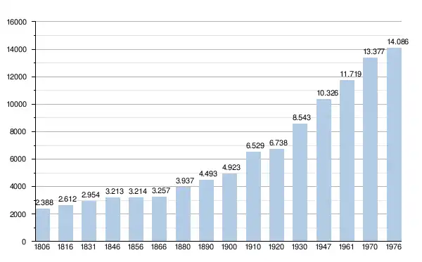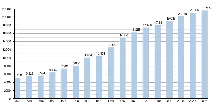 - Source : DGS - Remarque: 1831 jusqu'à 1981=recensement; depuis 1990=nombre d'habitants chaque 1er janvier[6]