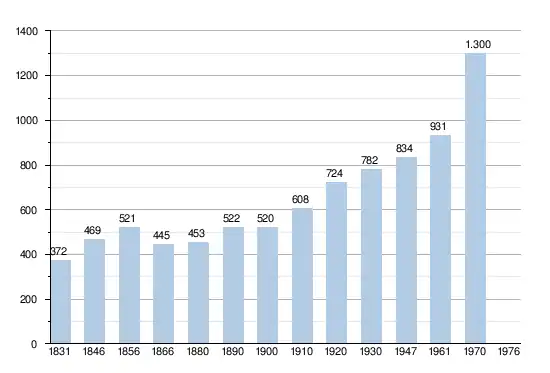- Sources : INS, Rem. : 1831 jusqu'en 1970 = recensements, 1976 = nombre d'habitants au 31 décembre.