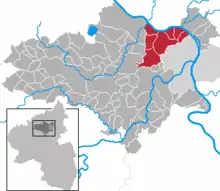 Localisation de la Verbandsgemeinde de Weißenthurm dans l'arrondissement de Mayen-Coblence
