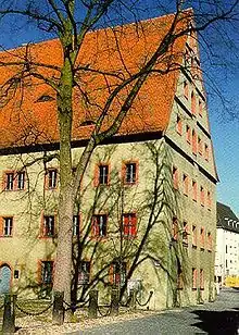 L’ancien hôtel de ville a été construit entre 1539 et 1545 par l'architecte Hans Nopl, le maître-menuisier Hans Stieber et le maître maçon Andreas Falk. Il a été déplacé entre 1914 et 1917. Son campanile a été offert à la municipalité en 1983. Depuis 1981, le rez-de-chaussée de l’hôtel de ville est occupé par des boutiques comme autrefois. Le plafond à poutres apparentes de la grande salle du conseil est un chef-d’œuvre de charpente du XVIe siècle. Naguère, l’hôtel de ville n'était pas seulement une administration, mais aussi le centre d'affaires de la ville. On y organisait aussi des représentations théâtrales et des bals. Aujourd'hui, le conseil municipal ne s'y retrouve qu'une fois l'an. On peut y célébrer les mariages ou certaines manifestations privées.